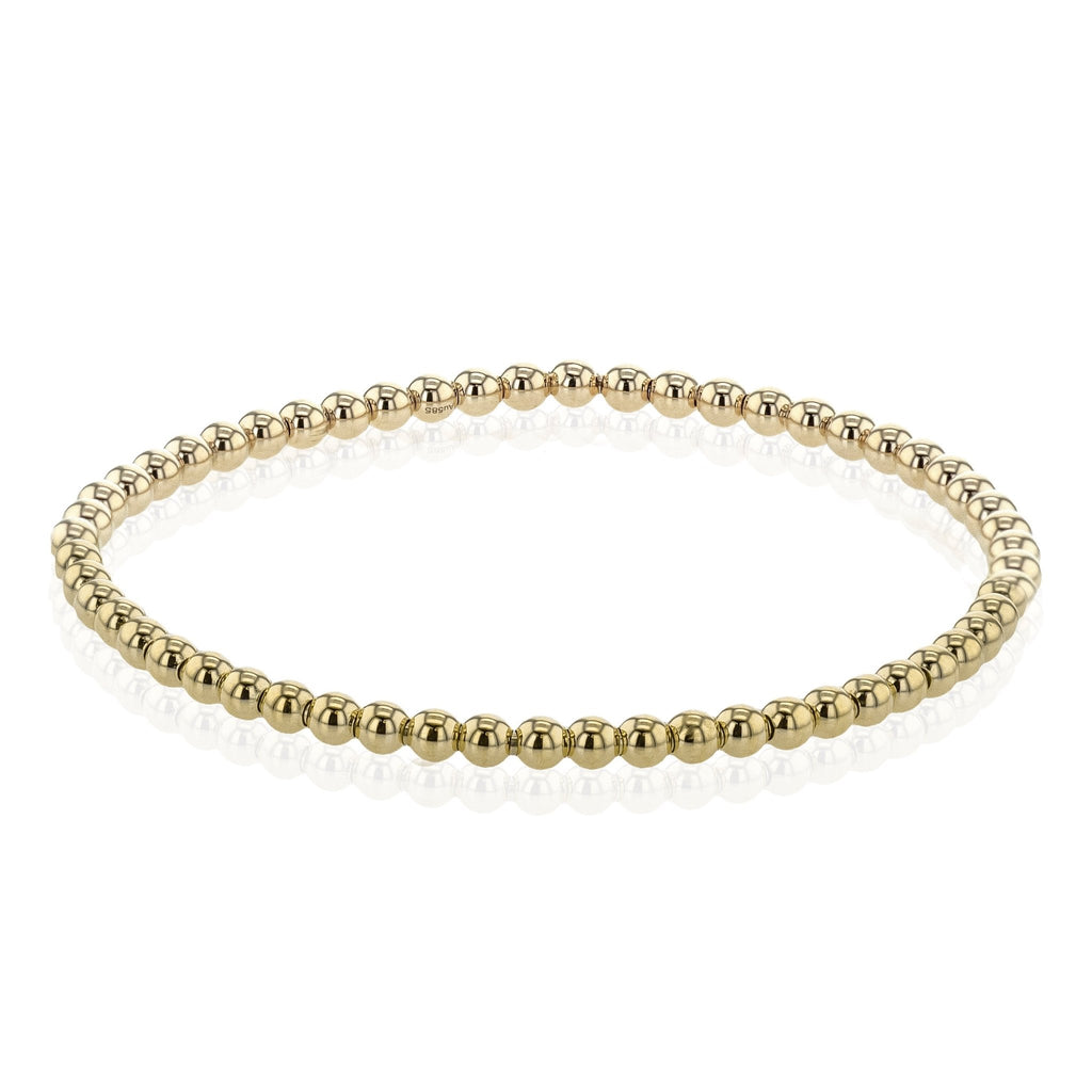 This bracelet features a continuous strand of polished gold beads, offering a sleek and versatile design. Its minimalist style makes it perfect for everyday wear or stacking with other pieces.
